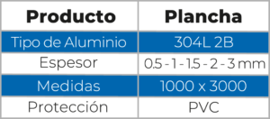 Esta plancha define como una aleación de acero con un mínimo del 10 % al 12 % de cromo contenido en masa.